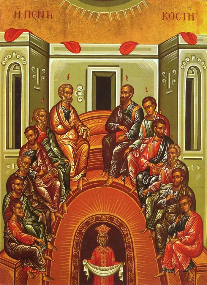 When the Most High came down and confused the tongues, he divided the nations. But when he distributed the tongues of fire, he called all to unity. Therefore, with one voice, we glorify the All-Holy Spirit! (Kontakion).